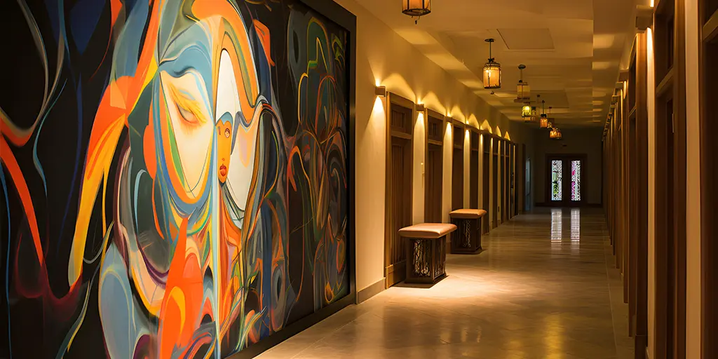 Flexibility and Uniqueness: Bespoke artwork gives you the freedom to design pieces that fit perfectly within your hotel’s spaces. Whether it’s a mural in the lobby, themed artwork for rooms, or textured feature pieces in your restaurant, each artwork can be crafted to enhance the unique aspects of your property.