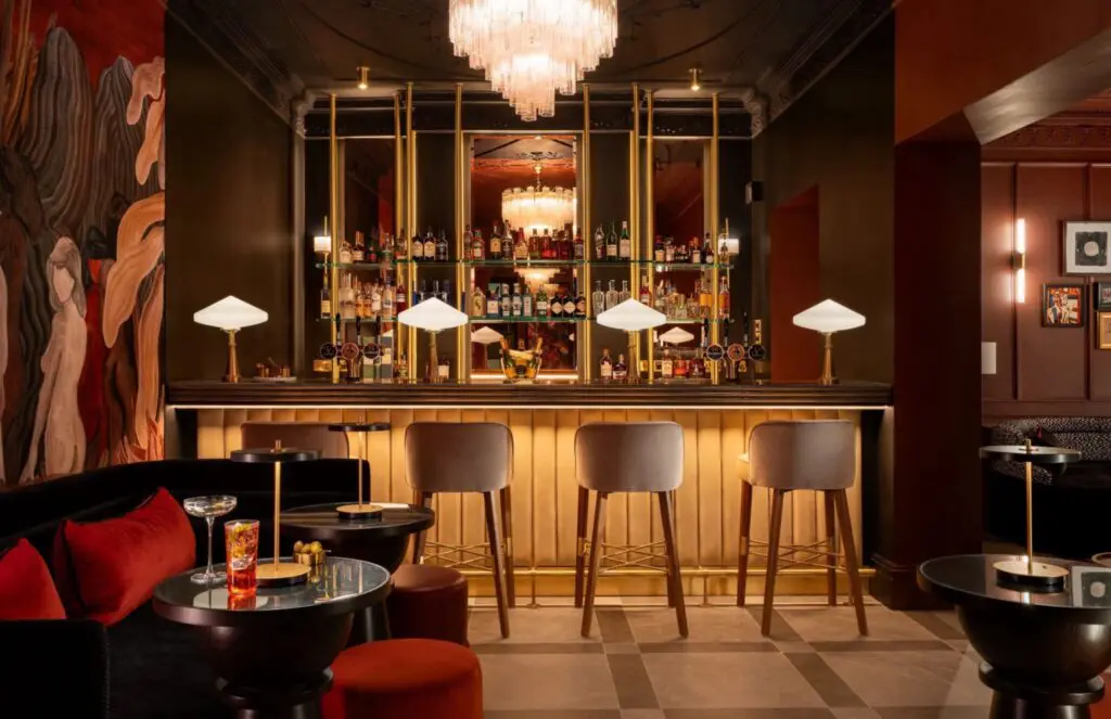 These bespoke pieces collectively form a visual story celebrating the golden age of literature, art, and social interaction, turning the interior into more than just a bar—it’s an experience.