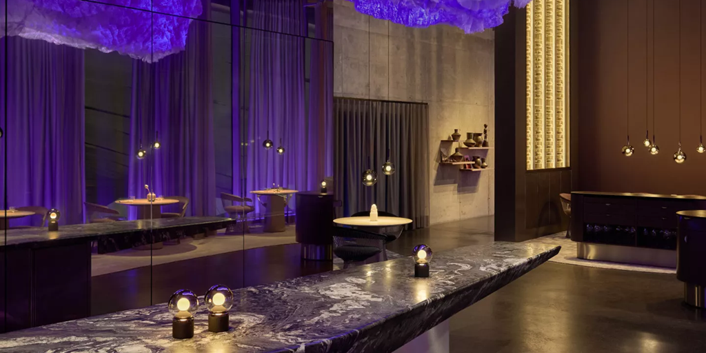 At 5 Savile Row, London, renowned chef Jason Atherton has opened the fine dining restaurant ‘Row on 5’, which he planned in close collaboration with Rosendale Design. When it comes to his 15-course menus, he opts for inviting comfort and a touch of theatre. With a tailored lighting concept from Occhio, the perfect stage is set and the experience of luxury gastronomy is redefined.