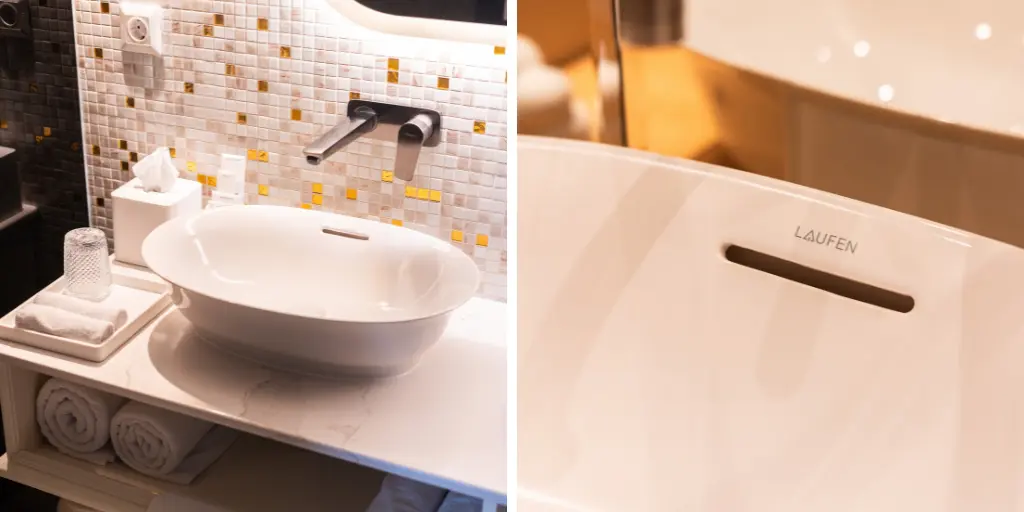 At Kimpton BEM Budapest, Marcel Wanders’ enchanting design vision extends into every bathroom space, where The New Classic washbasin, along with the LUA wall-hung pan and freestanding bathtub, bring sophistication to private guest rooms and suites. Public washrooms are equally refined, featuring LAUFEN’s innovative Lema waterless urinal and Cinto urinal divider, all seamlessly integrated to embody the hotel’s blend of history and modern luxury.