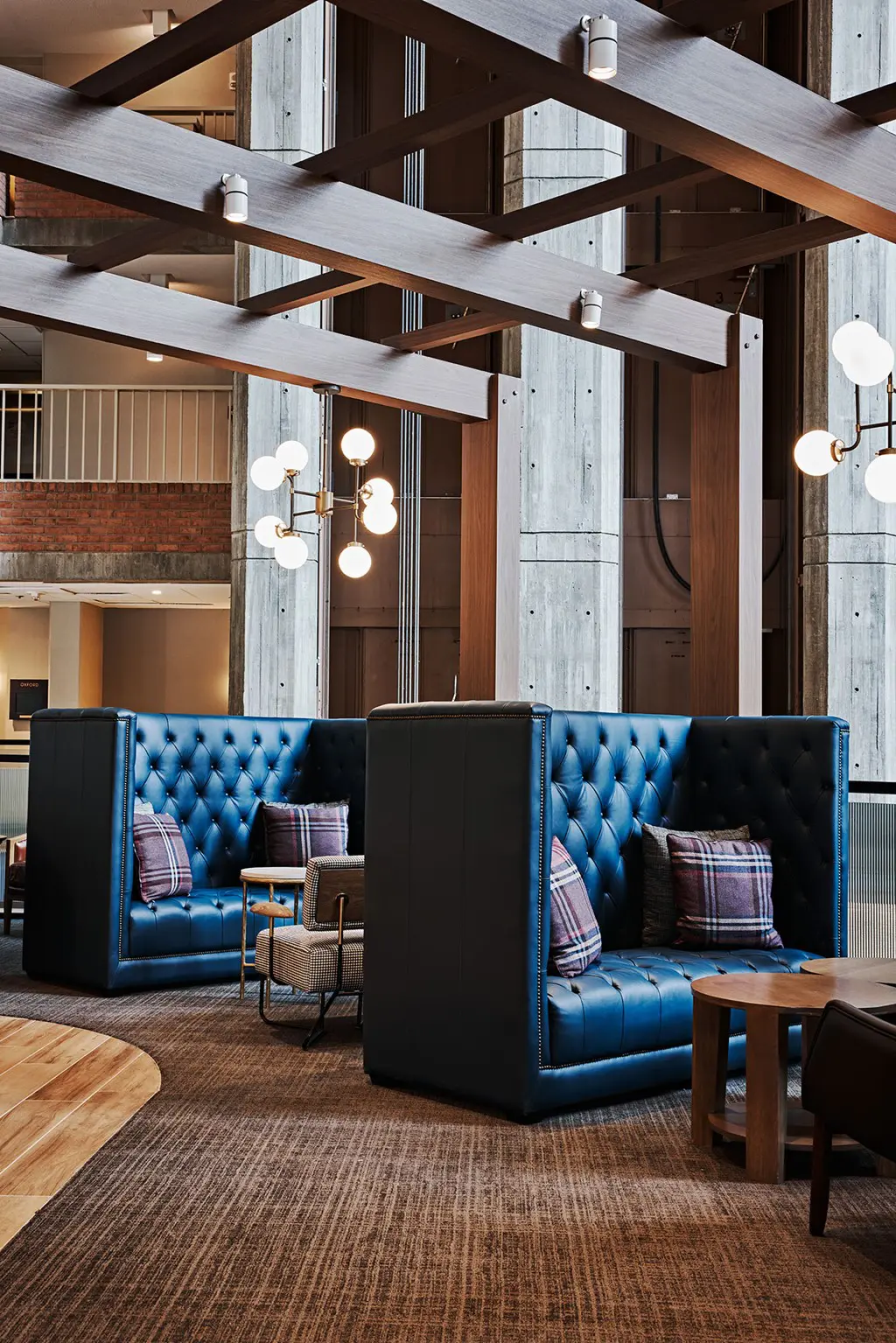 Situated on the Charles River amongst industrial ports, old warehouses, and established universities, the Hyatt Regency Cambridge hotel is inspired by the rich history that surrounds it. This is reflected in the recent renovation of the public areas.