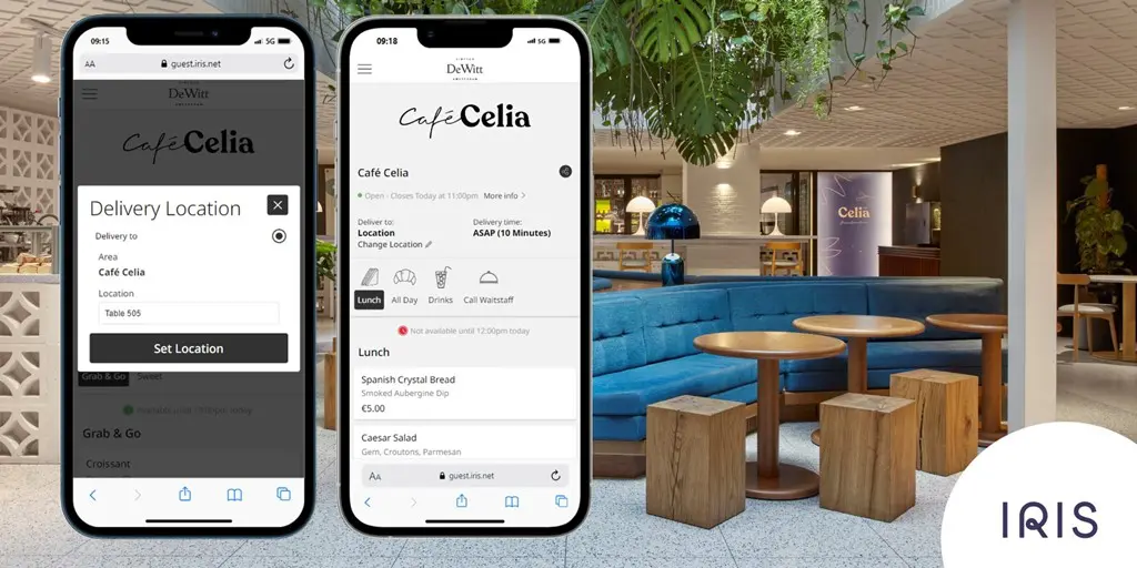 Dominic de Boer, Director of IT at Lore Group, commented “With IRIS mobile ordering in Café Celia in Kimpton De Witt, the ordering process has been streamlined. Guests no longer need to wait for a server to take orders or process payment.