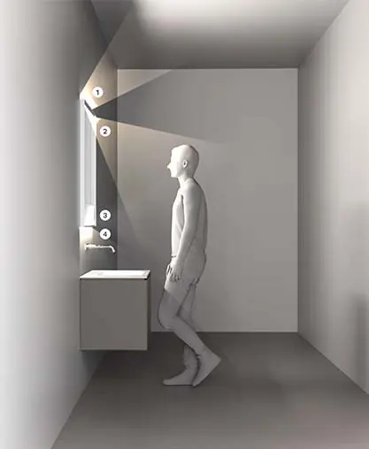 Four perfectly coordinated light sources in the mirror cabinet ensure harmonious illumination of the mirror image, washbasin and room.