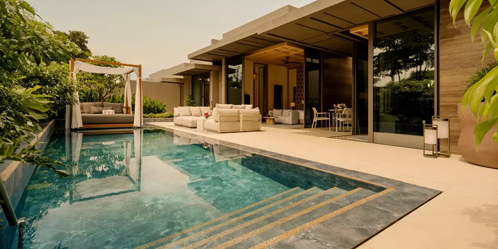 Surrounded by the lush greenery of Sentosa Island, Raffles Sentosa Singapore features 62 villas: from a one-bedroom villa spanning 211 square meters to the expansive four-bedroom Royal Villa covering 650 square meters. And, what’s even more, each villa has its own private pool and outdoor terrace—ideal for a leisurely dip or a glass of wine. This fully immersive journey connects guests to the resort’s serene landscape, which is home to unique flora and fauna, such as two heritage Ficus trees and even a peck of peacocks! (Just kidding, it’s really a “muster” of peacocks. But that’s not as fun.)
