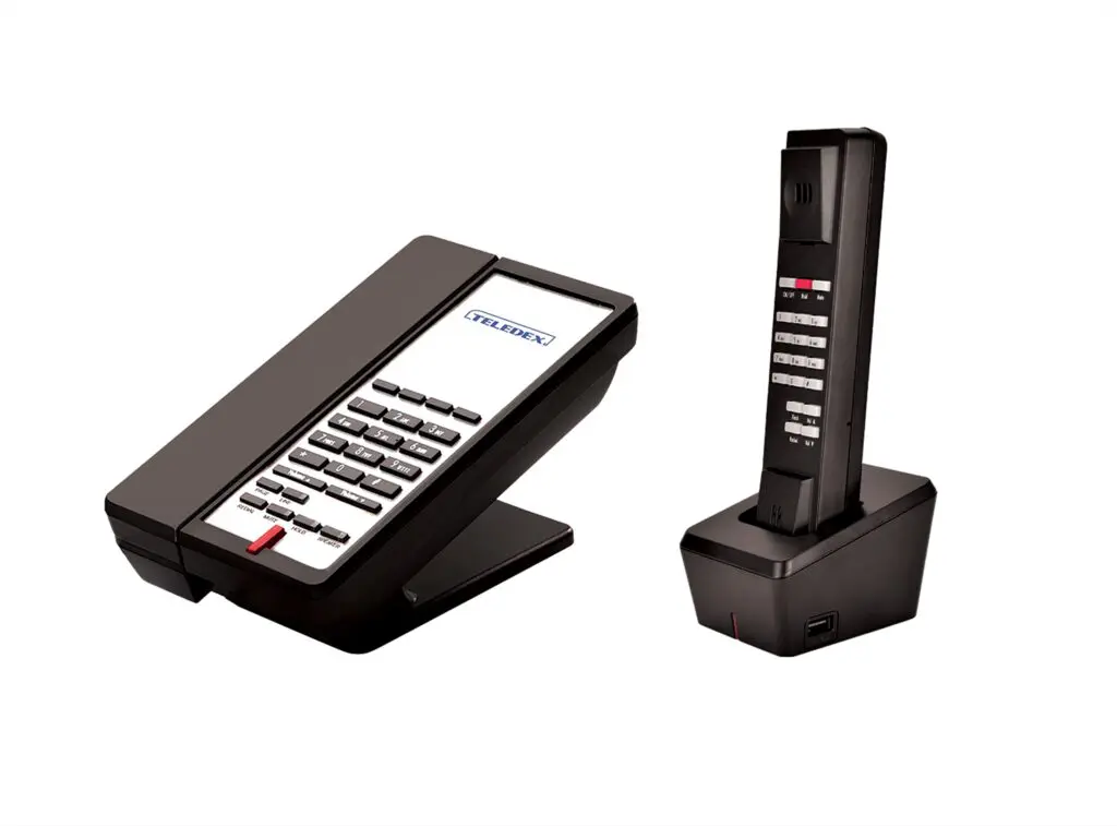 - Teledex E Series: Originally designed to meet the limited space requirements aboard cruise ships, the E Series features a micro-footprint that requires less room on the hotel guest room desk and nightstand. Available in single and two-line, analog, VoIP, corded, and cordless configurations, these phones offer patented OneTouch voicemail retrieval and consume less energy in the manufacturing process, reducing environmental impact.