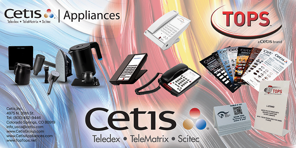 With a strong commitment to innovation, quality, and customer satisfaction, Cetis, Cetis Appliances and Telecom Printing Solutions (TOPS) continue to enhance the hospitality industry by providing reliable communication solutions, elegantly designed appliances, and high-quality printed materials that elevate guest experiences worldwide.