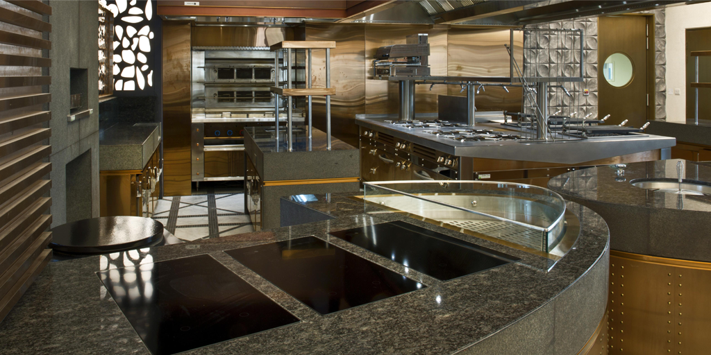 Whether artificial stone, glass or wood – the InductWarm® 130+ induction module from Gastros Switzerland can be installed underneath counter tops made from different materials.