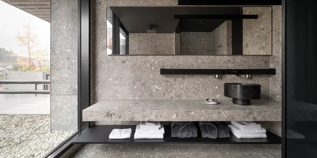 When every shadow tells a story. The Linea collection by Mirage interprets porcelain stoneware through three-dimensional textures inspired by the traditional craftsmanship of natural stone.