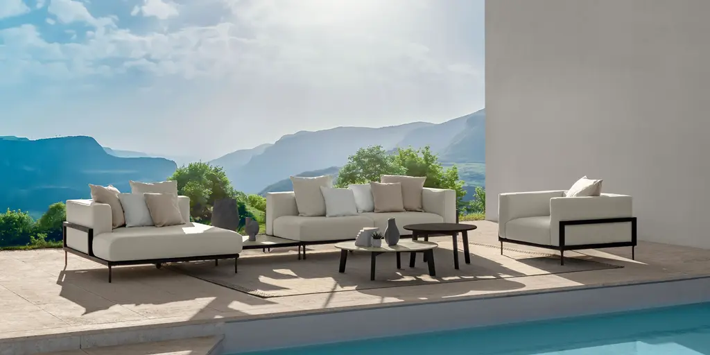 The lightness of the aluminum, the modernity of the Vitter surfaces and the surprising elegance of the upholstery are combined with a new soft cushioning that is very welcoming and comfortable, creating a new line that perfectly suits any style or outdoor space.