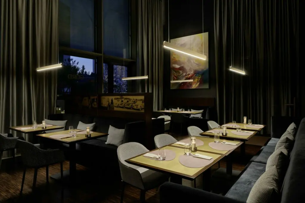 Experience the perfect blend of functionality and ambience with Occhio's versatile lighting solutions, ideal for creating the perfect atmosphere for any restaurant. From bright and glarefree light for the chef's food preparation to changeable, height-adjustable luminaires above the tables for the restaurant's guests.