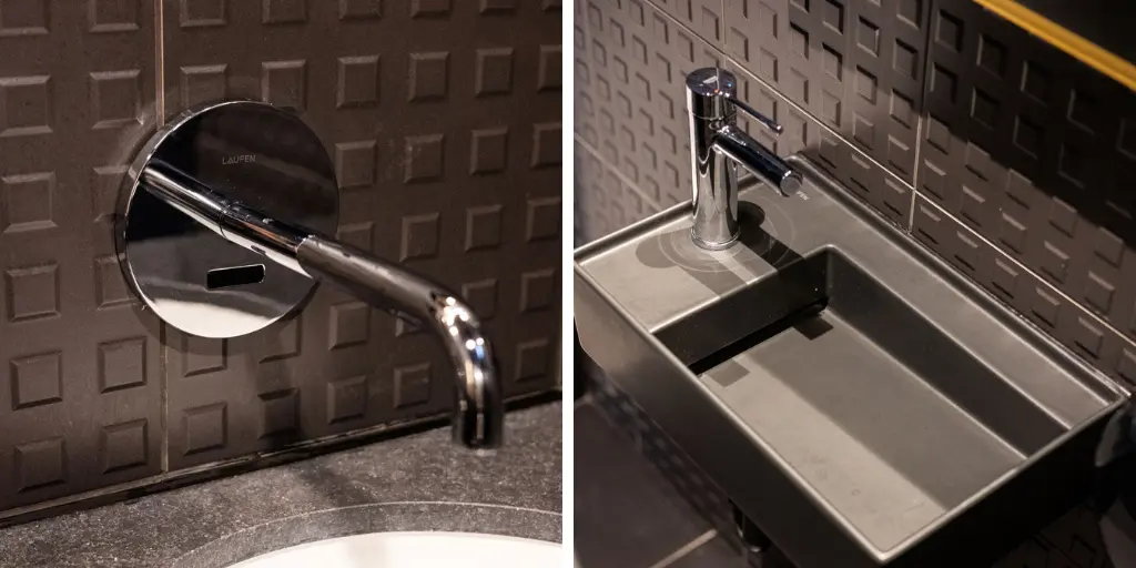 For the Tribe rooms, Laufen installed the Pro WC Wallhung rimless white toilets. These feature a hygienic design that prevents bacteria accumulation, echoing the brand’s commitment to cleanliness while maintaining a contemporary aesthetic.